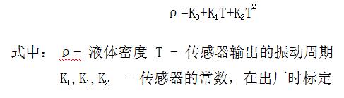 WS3051MD-MM 智能螺紋式單直管密度計根據(jù)共振原理而設計。當流過單直管內的液體密度變化時,他會影響密度計的振動質量,振動質量的變化影響單直管的諧振頻率,諧振頻率與過程流體的密度成反比。通過另一個壓電晶體檢測出來,通過移相和放大電路,測量管被穩(wěn)定在自然諧振頻率上。當諧振頻率變化時,通過電子處理單元計算出準確的密度值。振動頻率與密度的關系為: