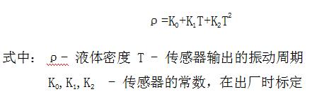 WS3051MD-MN智能螺紋式單直管濃度計(jì)根據(jù)共振原理而設(shè)計(jì)。當(dāng)流過(guò)單直管內(nèi)的液體密度變化時(shí),他會(huì)影響密度計(jì)的振動(dòng)質(zhì)量,振動(dòng)質(zhì)量的變化影響單直管的諧振頻率,諧振頻率與過(guò)程流體的密度成反比。通過(guò)另一個(gè)壓電晶體檢測(cè)出來(lái),通過(guò)移相和放大電路,測(cè)量管被穩(wěn)定在自然諧振頻率上。當(dāng)諧振頻率變化時(shí),通過(guò)電子處理單元計(jì)算出準(zhǔn)確的密度值。振動(dòng)頻率與密度的關(guān)系為: